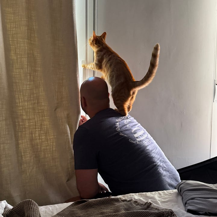 Omg Will looking out the window with a curious kitty. Obsessed 🥹😂